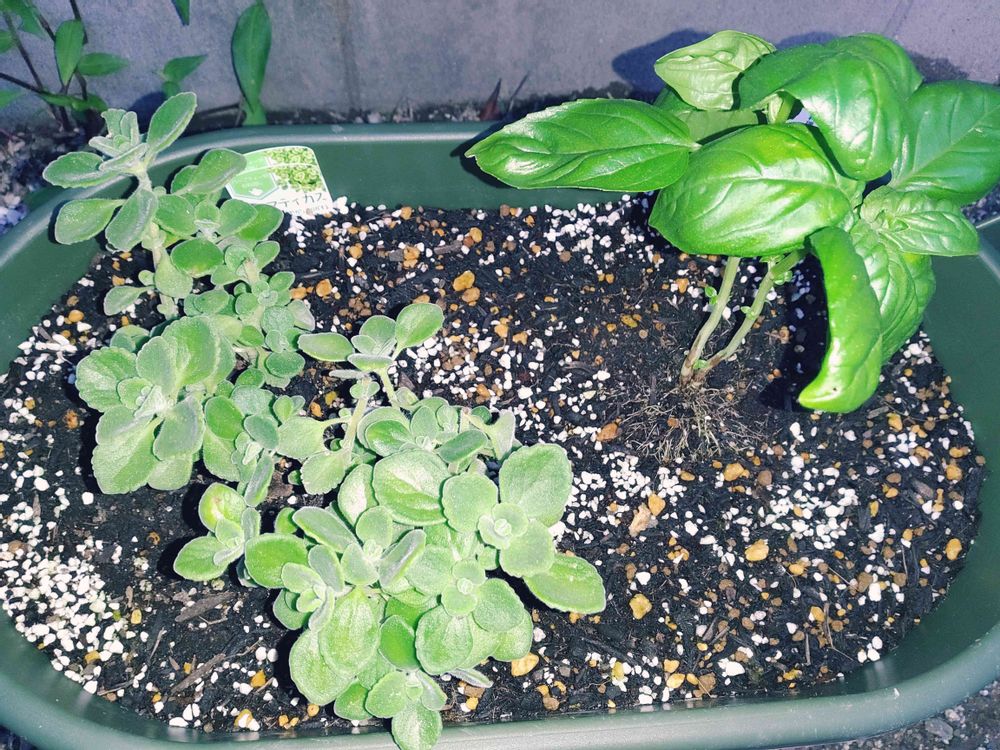 こんばんわ。アロマティカスとスィートバジルの寄せ植えです。アロマティカスはハーブとしてはちょっと変わり種だと思います。匂いはハーブ系統のスッキリした匂いです。ただ植物としては多肉植物を思わせる形をしてます。これ昨年植え付けしたんですけど、冬越しできず枯らしてしまいましたのでリベンジで植え付けしました。上手く増やしたいです。冬越しも上手くいってほしいです。よろしければご覧ください。