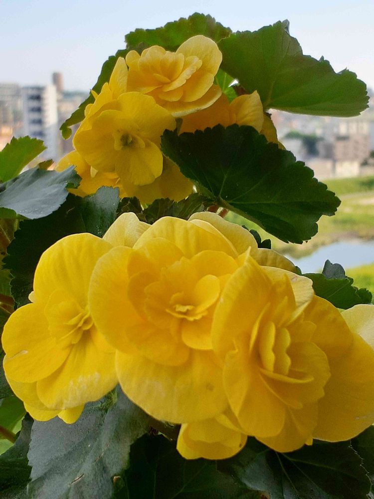 優しいレモンイエローのお花が赤色に続きたくさん咲いたのでベランダが華やかになりました❤💛✨