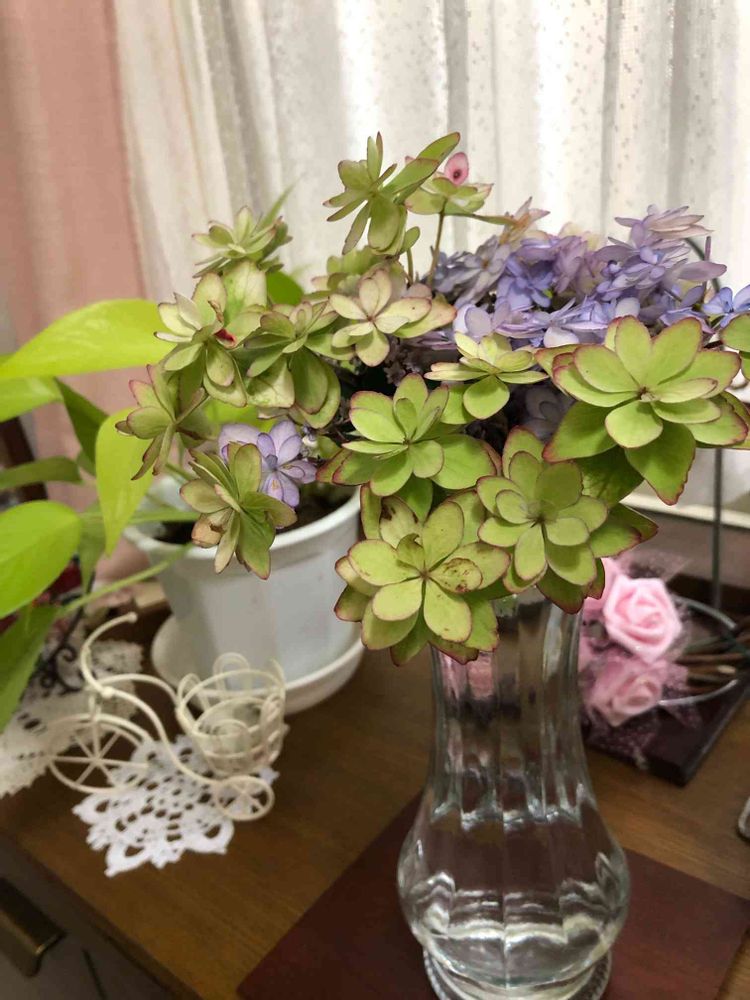 紫陽花の、色変わり初めてなので😅