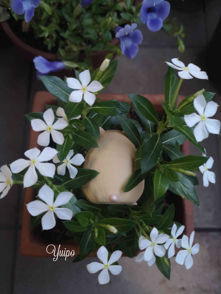 小さな小さなニチニチソウです。昨年もお迎えしたけどパープルしか冬越しできませんでした😅こちらのホワイトはリベンジ~