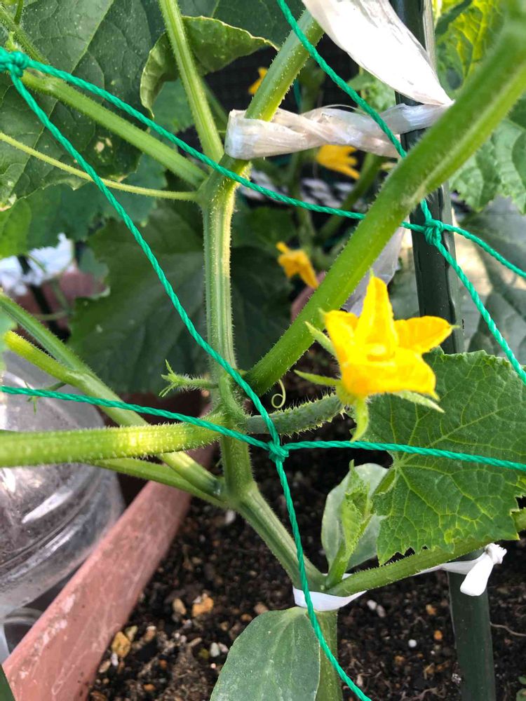 今朝のきゅうりの雌花2個目😍早く育って💚💚
