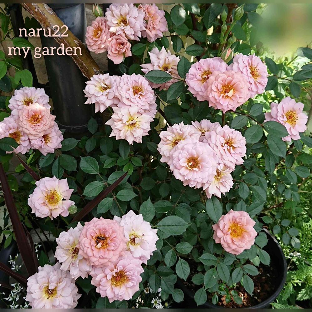 いつも新しいバラ🌹を迎える時は新苗をお迎えして大きく育てたけど、今回は蕾の着いてる大苗をお迎えしたから、いっぱい咲いてるのよ😁シシシ