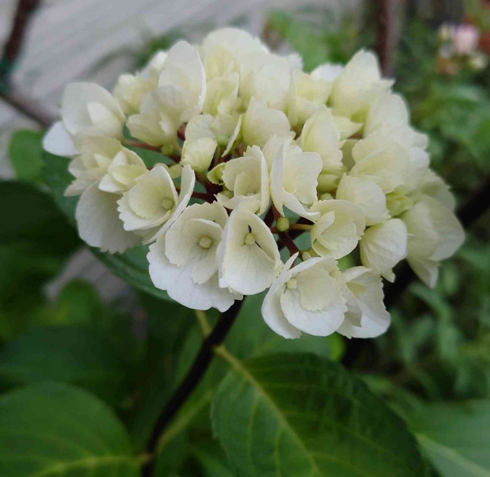 シマウマのカラーのようにお花が白くて茎が黒い紫陽花❁