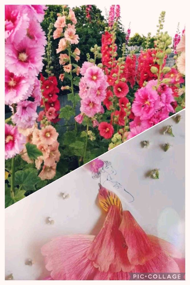 タチアオイの花弁ってドレスの生地のようで、ホントにステキですね😍✨