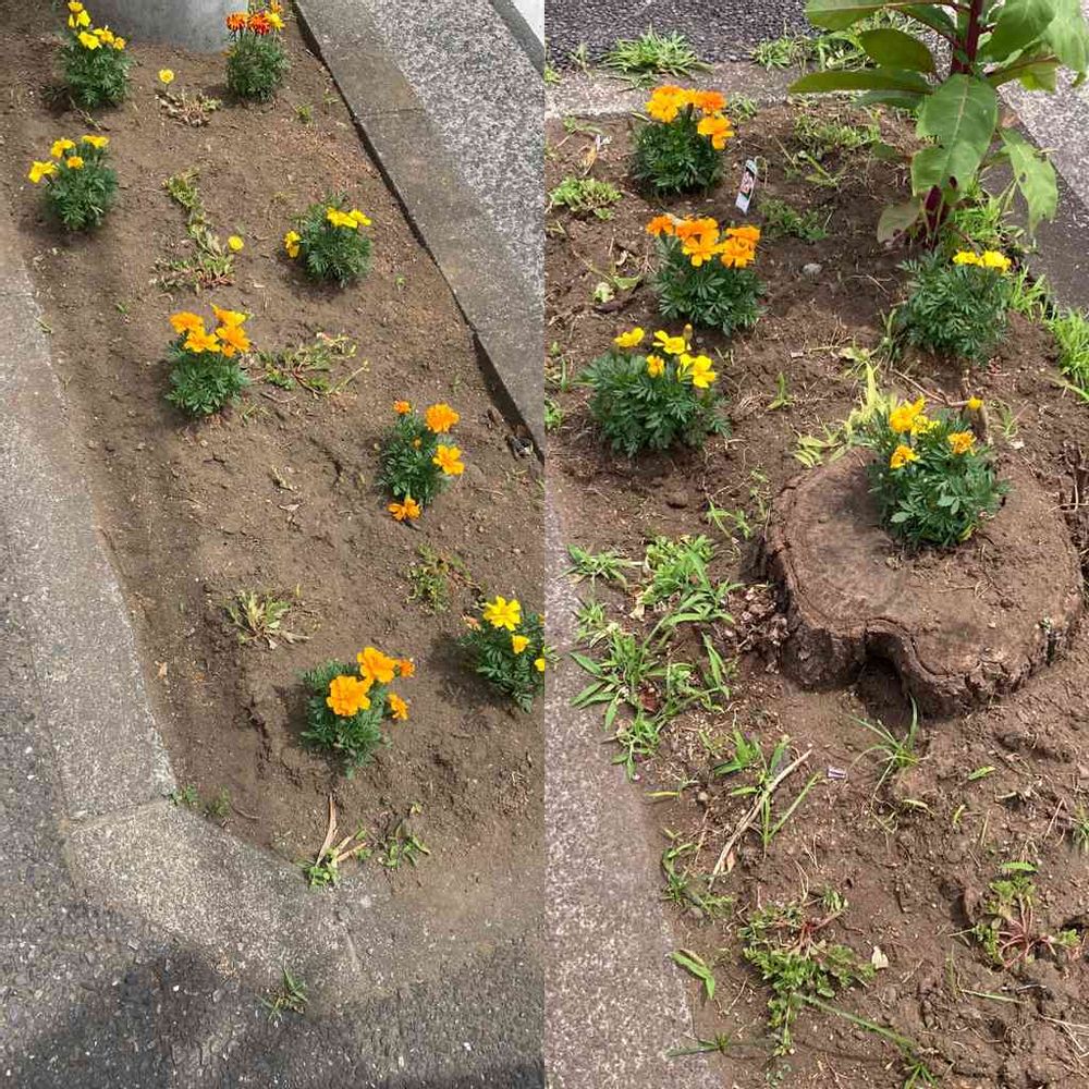 ここは、地域の子ども達有志が植えてくれるんです🌼なので、マスによって植え方がまちまちで楽しいです♫