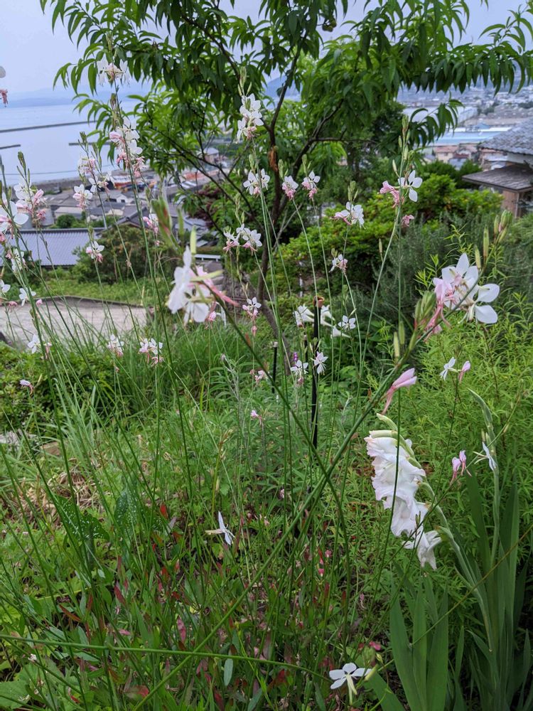 お隣さんの、畑より、ガウラ、不揃い咲きが、良いのかも。☺️🏵️🌼📸