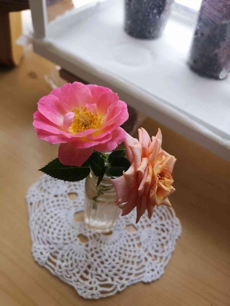 ベランダガーデンの🌹も最後です。ミニバラ2種類を生けてみました。