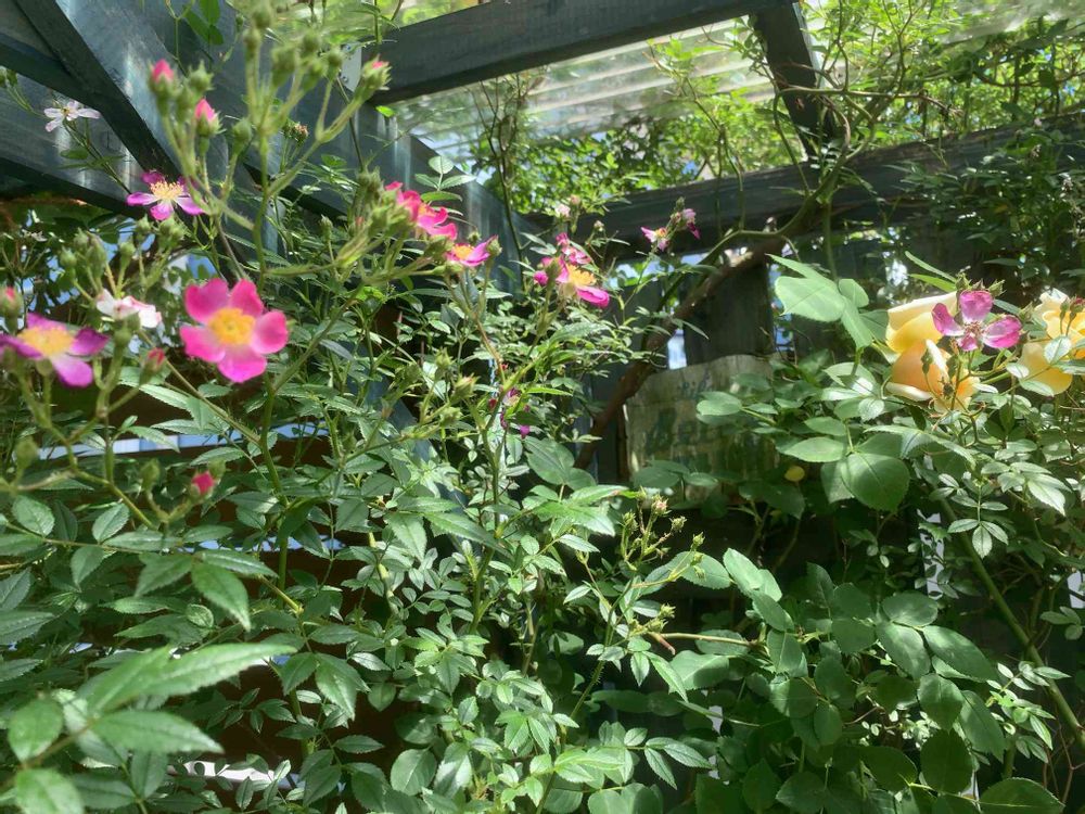 ローラアシュレイが咲き始めました。3年前に鉢植えから地植えしてものすごい勢いで成長してます。