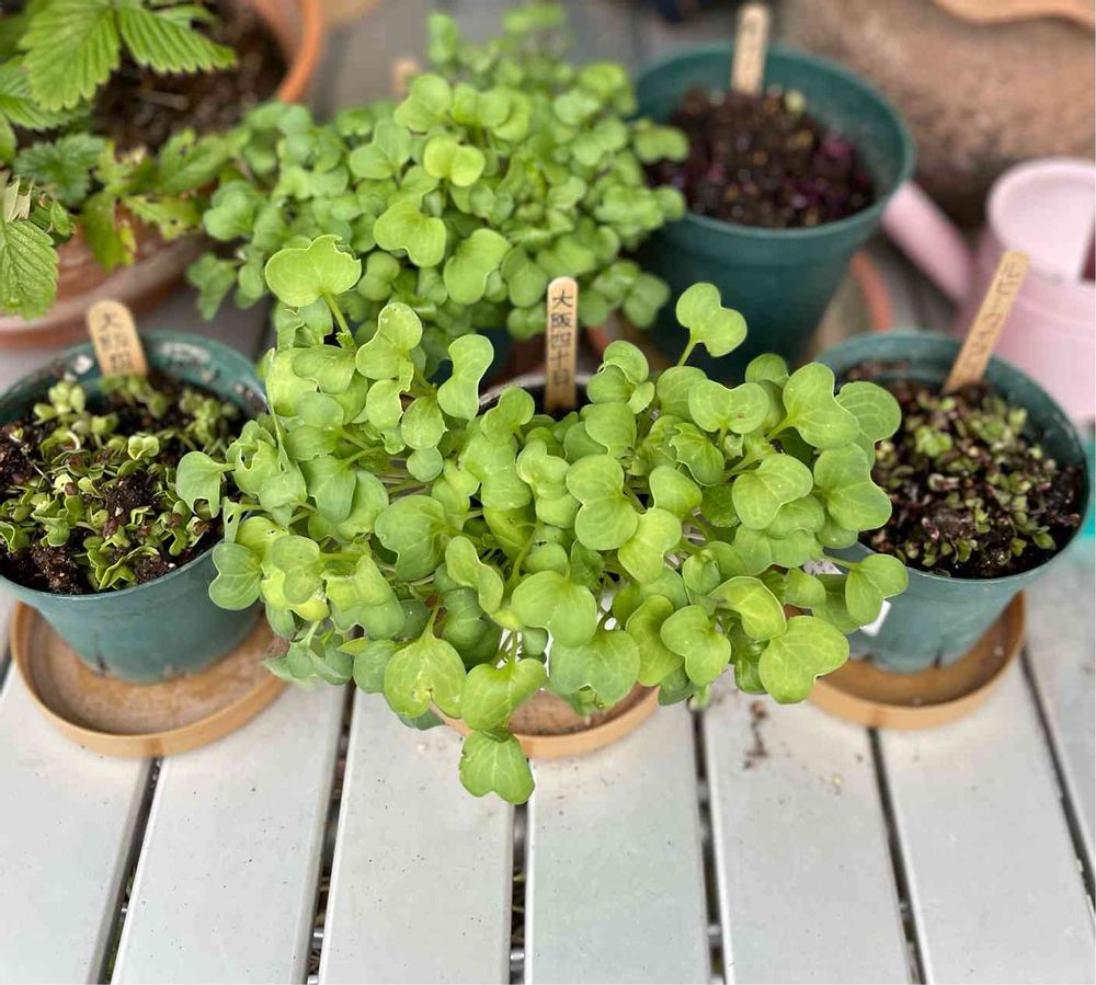 カイワレ大根栽培サイクルⅢ-387。昨夕大阪四十日大根カイワレを一部収穫しました。3鉢で芽が根付きました。