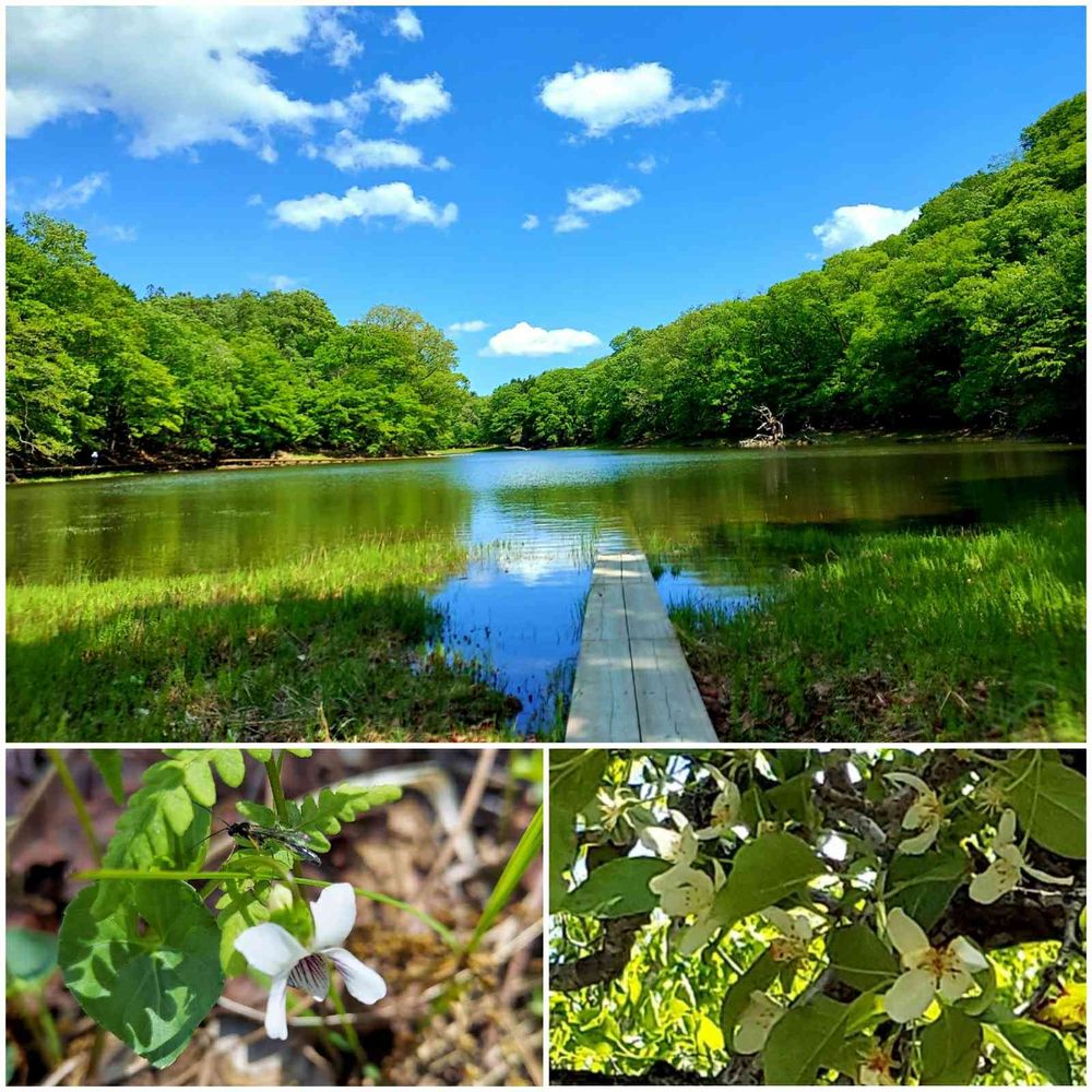 沼の畔には小さなツボスミレ(ニョイスミレ)見上げる木にはズミの花が咲いていて💓癒しの風景でした😍💖