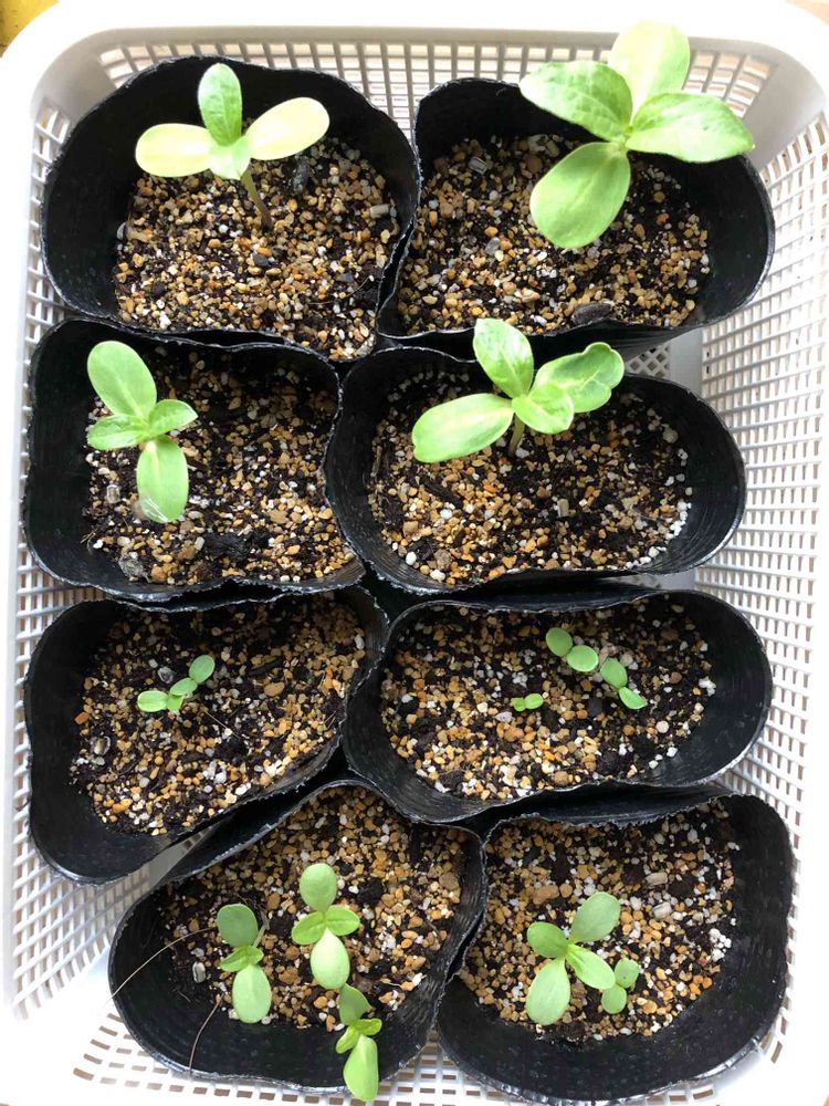 今週日曜日に植え替えをしたいなと思っています。タネから挑戦中のひまわりと百日草です。
