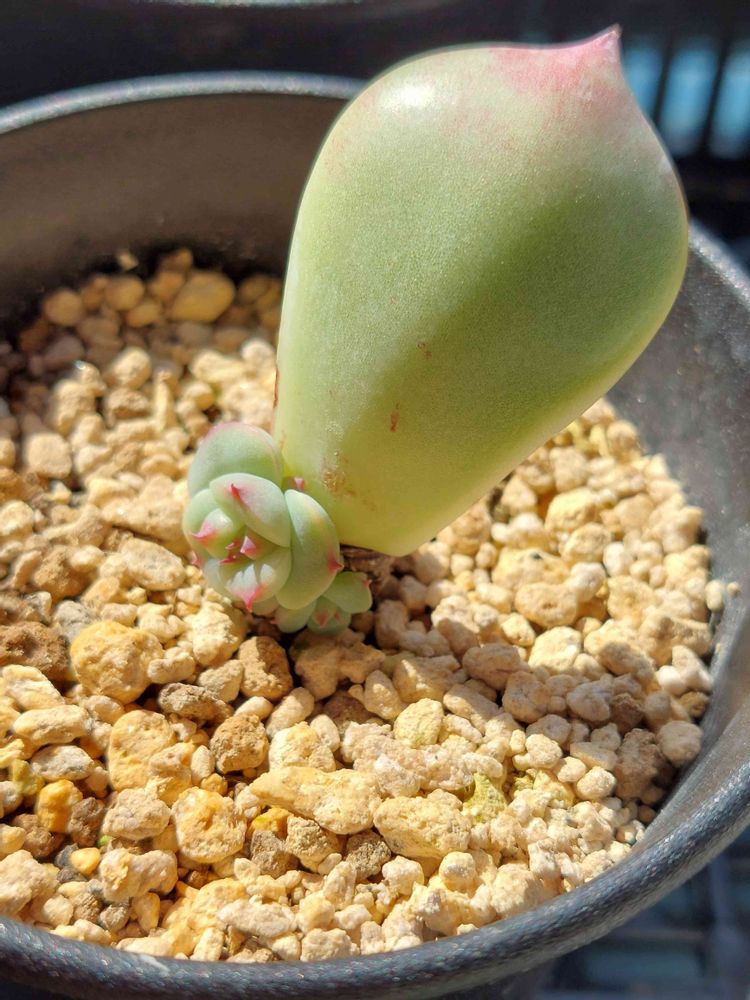 葉っぱ1枚ついてるんですが、ベビー2個が葉っぱを90度押し上げてます。