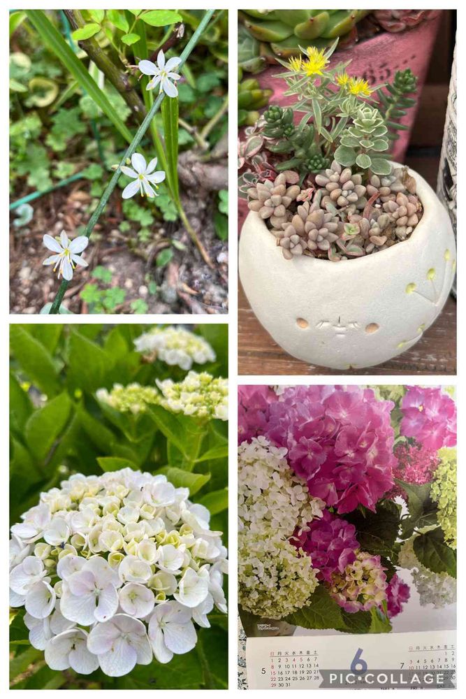 紫陽花とオリヅルランのお花も素敵✨🌸