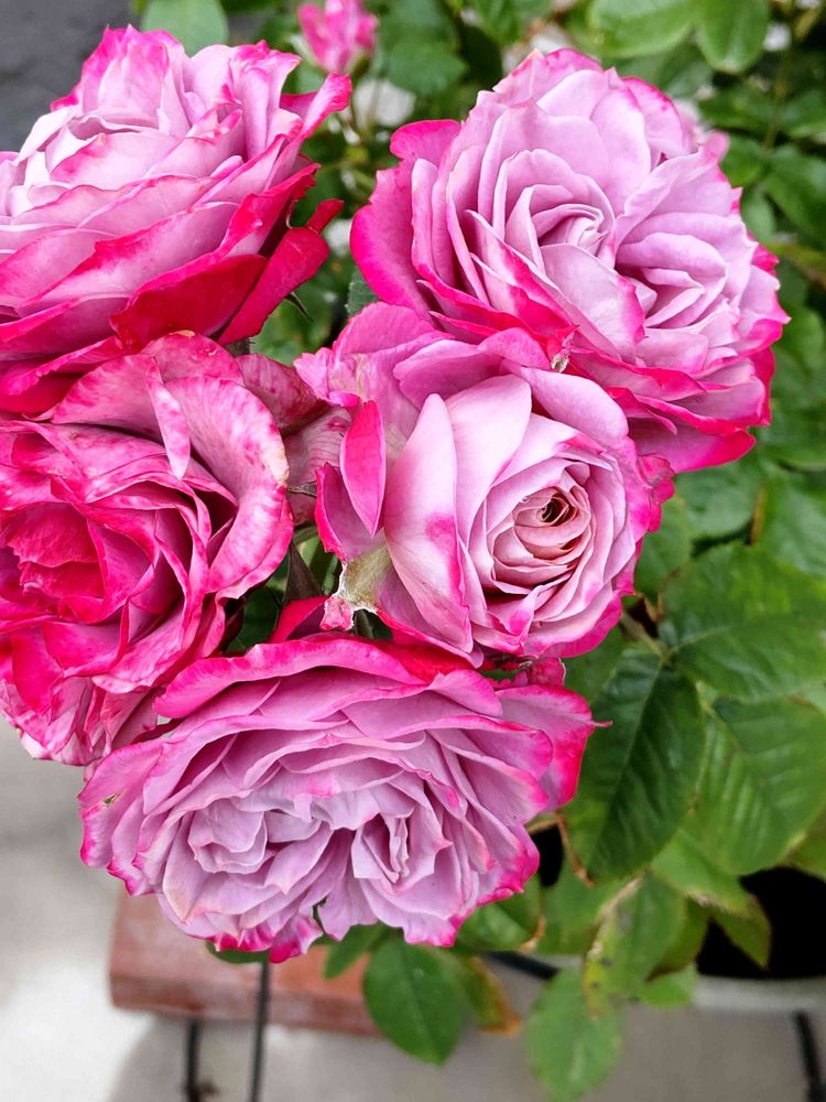 葉っぱは傷んでるから写せないけどキレイに咲いてくれました。モーブな魅力のミニバラ。買った時は6センチプレステラに4本挿し木されていた小さな苗だった😌それが今はミニバラといえないくらい大きくなった…😊嬉しいな✨子育てと同じだね😊