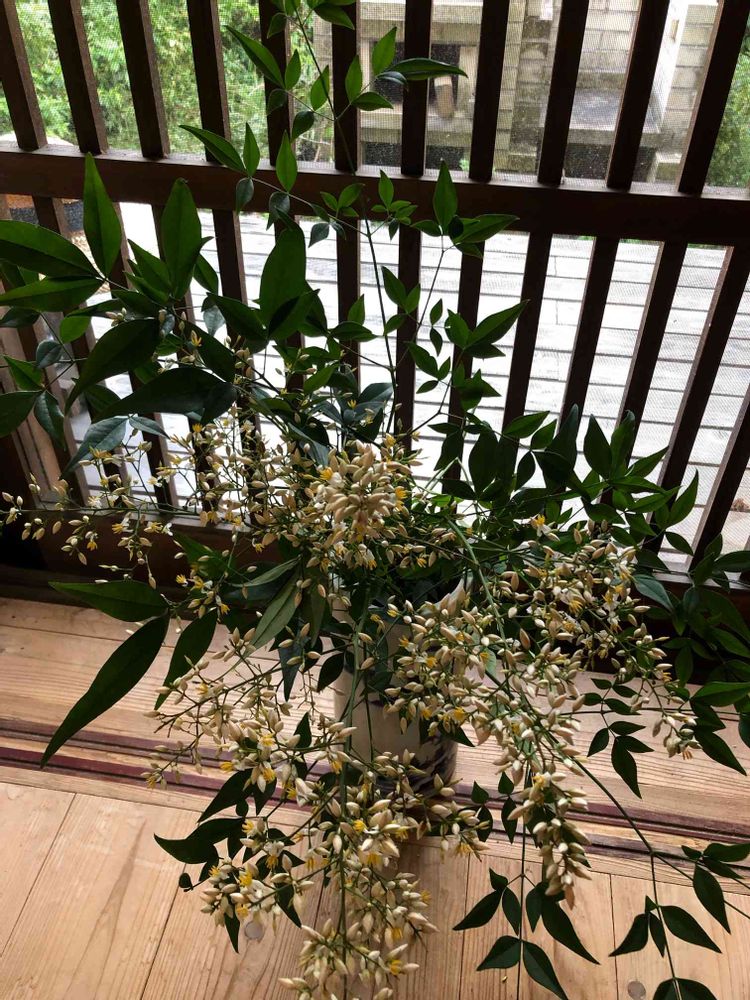 伸び過ぎた南天、3メーターの先には花か咲いて居ました。