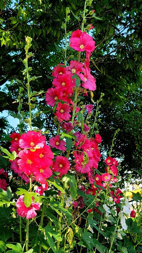 梅雨にもなってないのに咲き始めて『梅雨葵⁉️』もうお花たちは感じてるのか…🤔この暑さ😱💦…じゃ梅雨明けまでにてっぺん迄咲きそう🐸