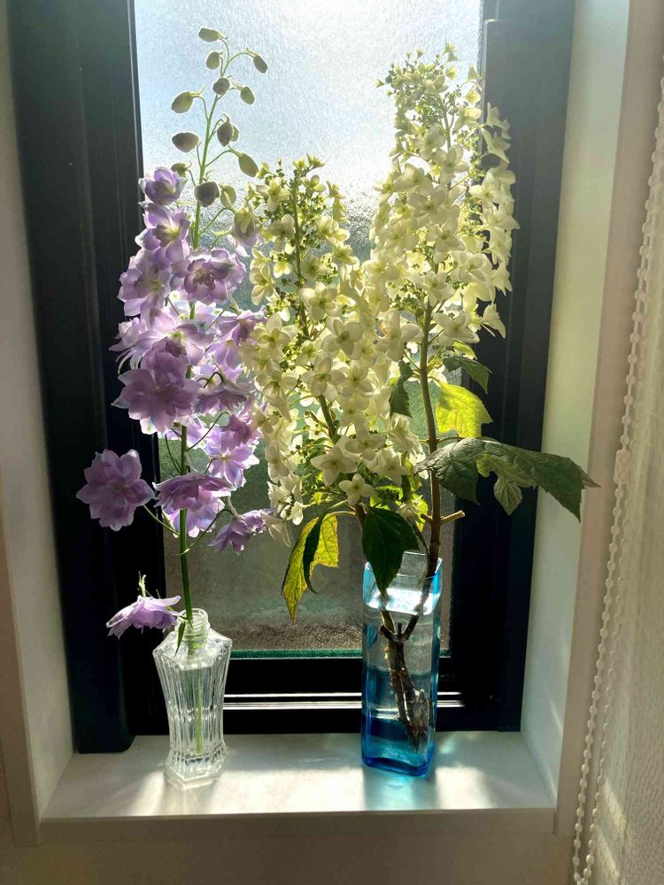 窓辺,デルフィニウム,柏葉紫陽花の投稿画像