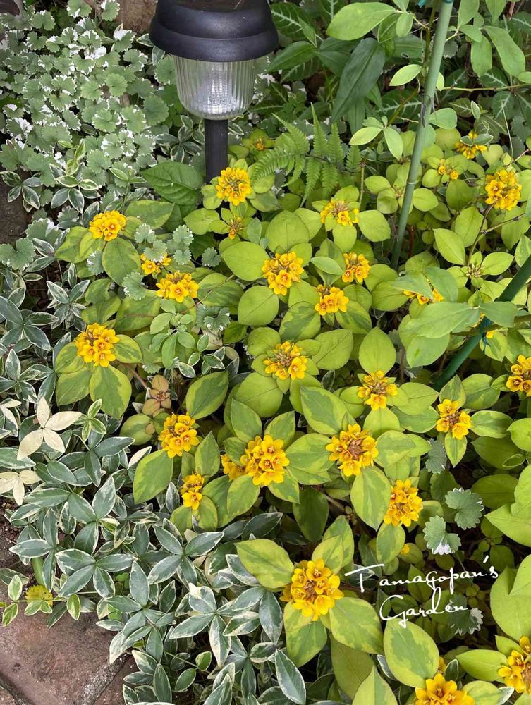 頭上のピエールさんが咲き終わり、グランドカバーのリシマキア・リッシーのお花が待っていましたとばかりに咲いています💛