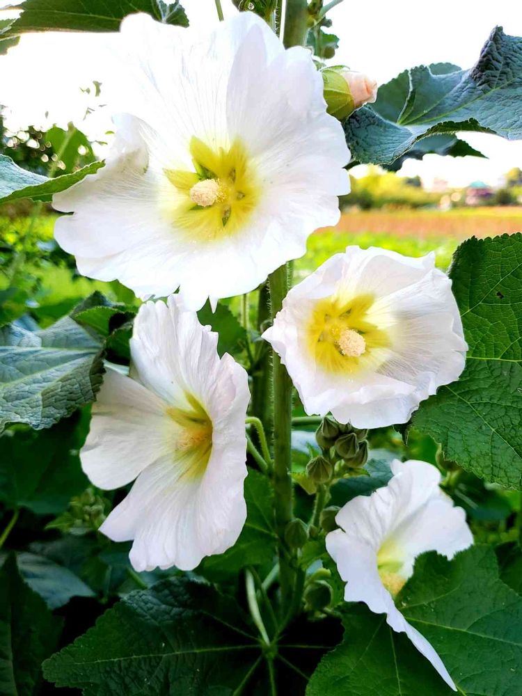 お久しぶりです。私も白いタチアオイが好きです。主張しないけれど清々しいですね!