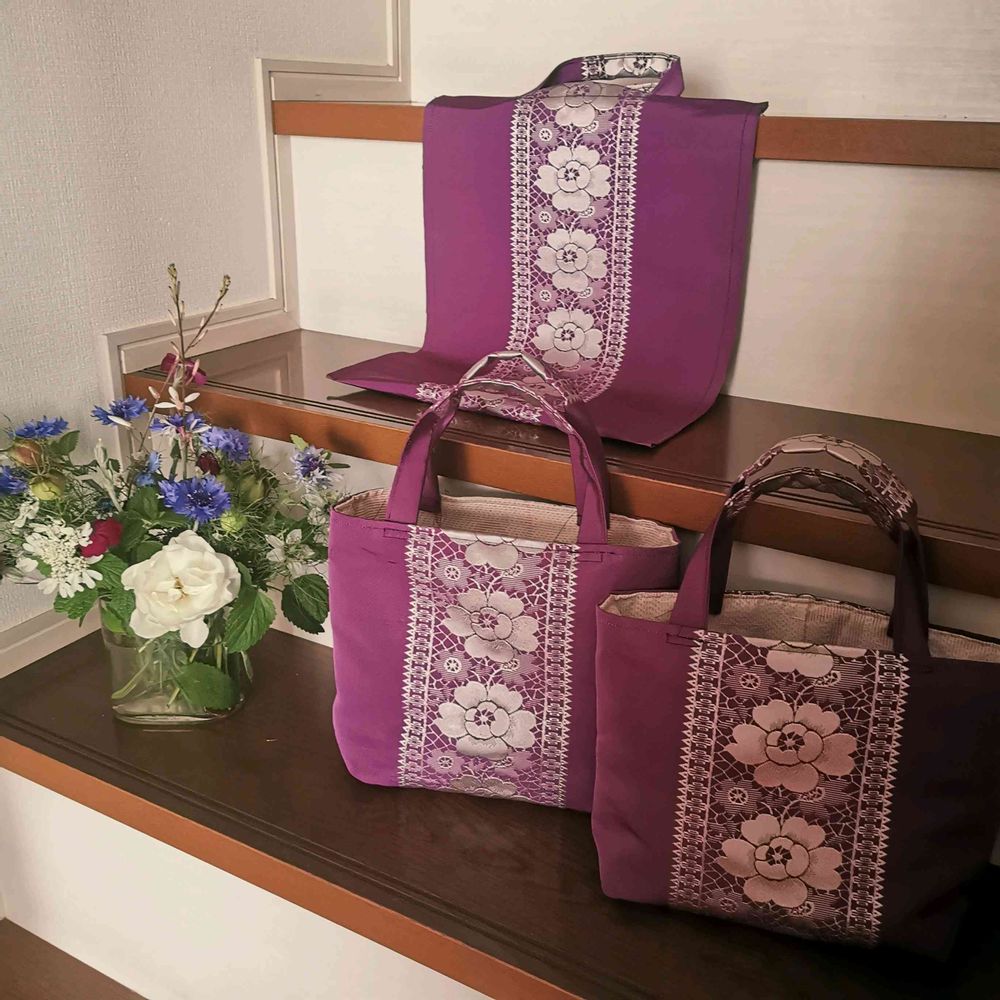 これまで敷物にしていた帯でバッグを作りましたー。まだまだ反省点はあるけれど、あるだけ使いきりました💦