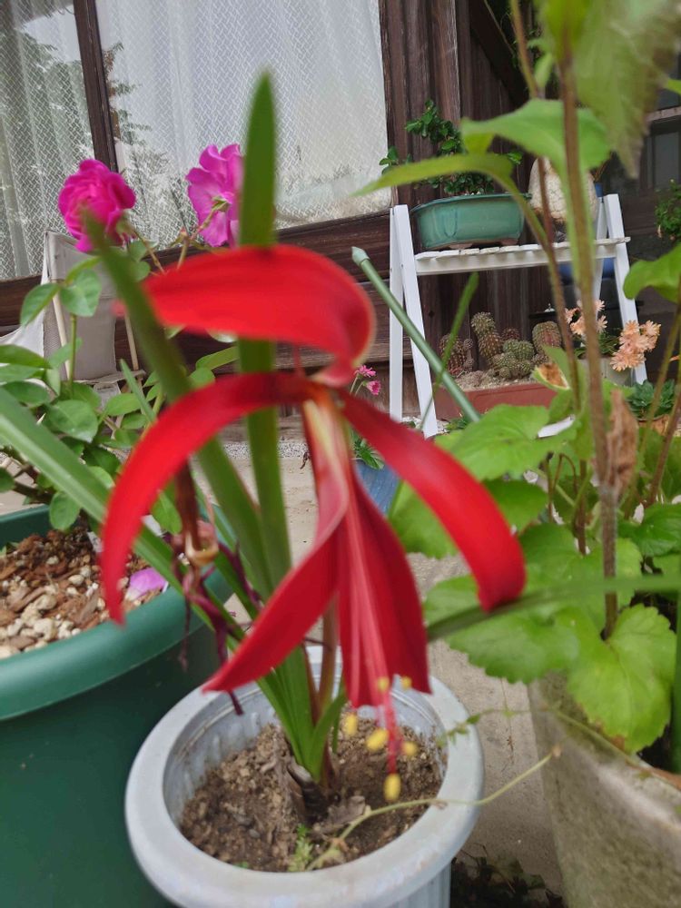 初めてかも。真っ赤なお花が、はじめアマリリスかと思ってしまいました。名前のツバメは、カッコいいですね😆💓
