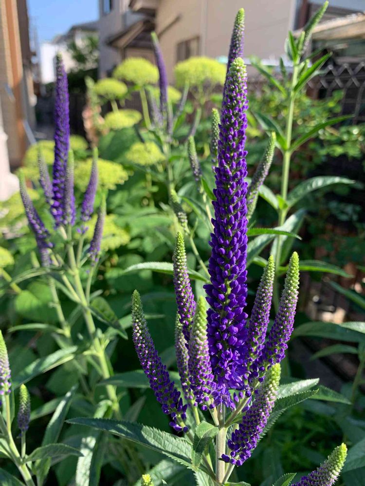 バラが終わった緑ばかりの花壇に彩りを添えてくれてます💜