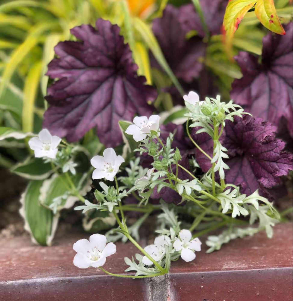 こぼれ種のシルバーリーフのネモフィラ🤍
