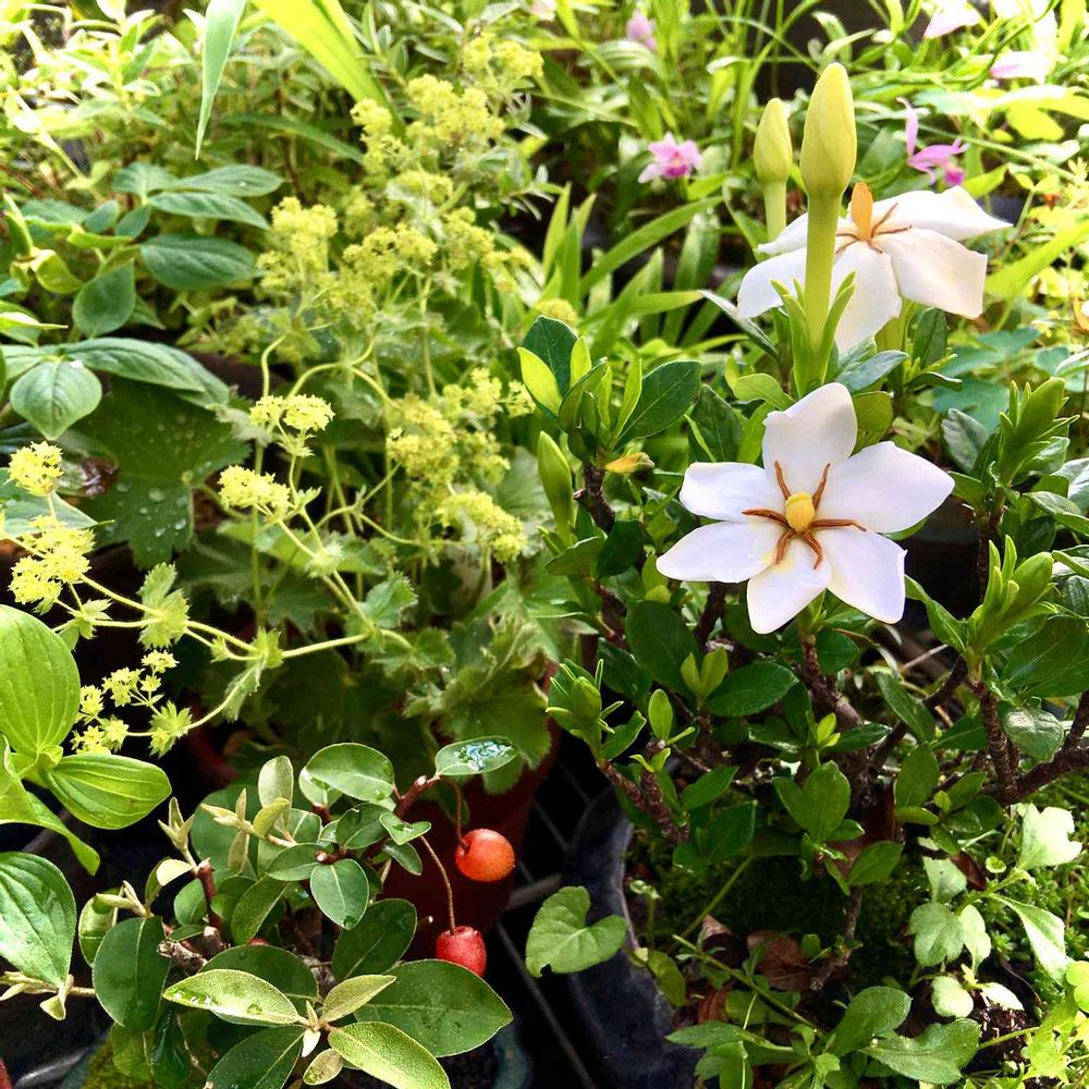 遮光コーナーの小さい子たち。クチナシがいい香りです。リラックスエリアです。