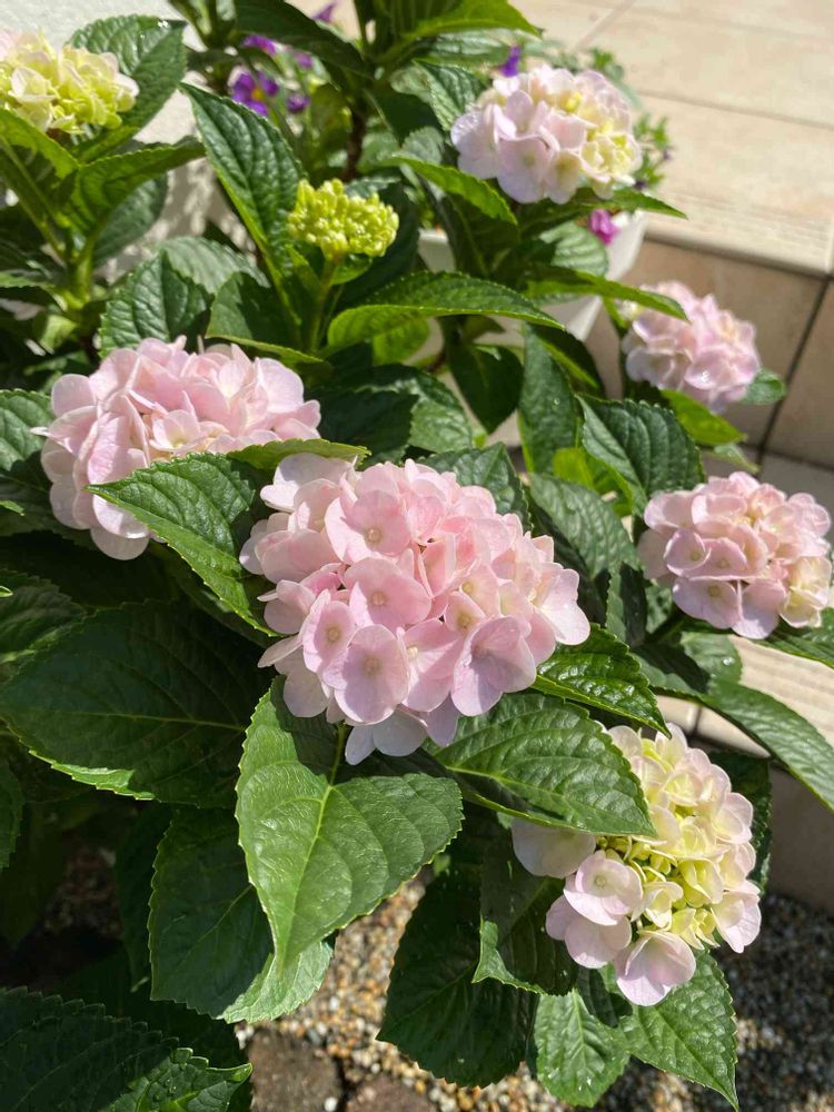 アジサイ色づきました✨青色の肥料をあげたのにやっぱりこれもピンクになってしまいました…なぜなのぉ〜😅