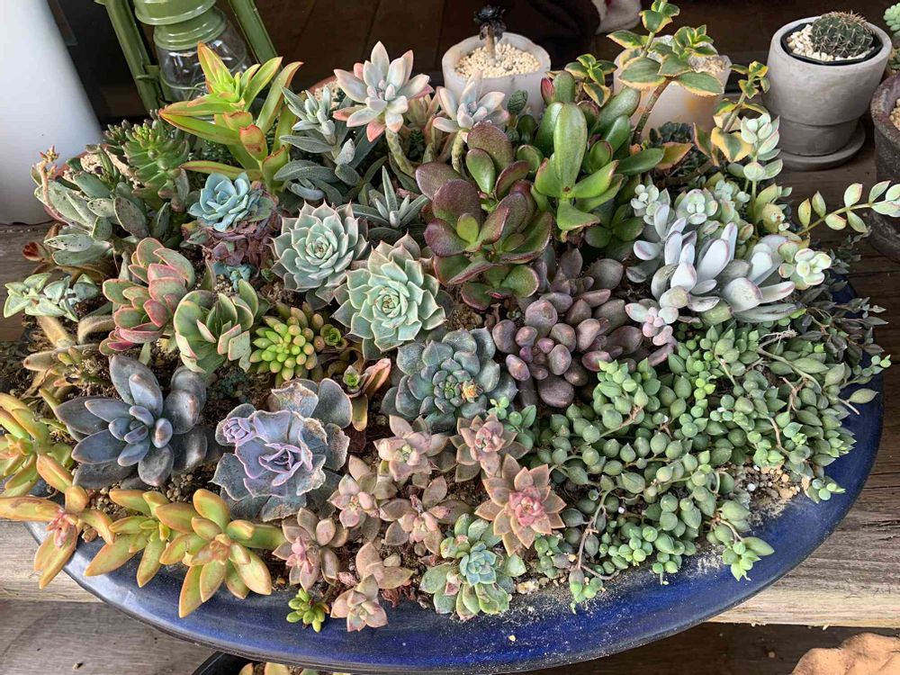 私もここまでぎゅーぎゅー寄せ植えしたのは初めてです。3月末に、実家の母が葉挿しから育てた苗などを沢山貰ってつめこんでからはや2ヶ月🌵秋にまた紅葉するだろうし、どうしたものやら。