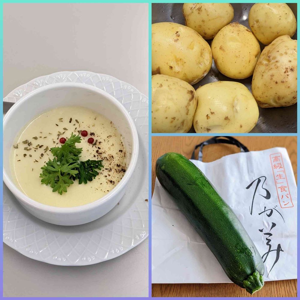薬膳カフェの講座で自家製の新ジャガイモのスープ🥔を頂きましたψ(´ڡ`♡) オイシー♪ パセリ🌿