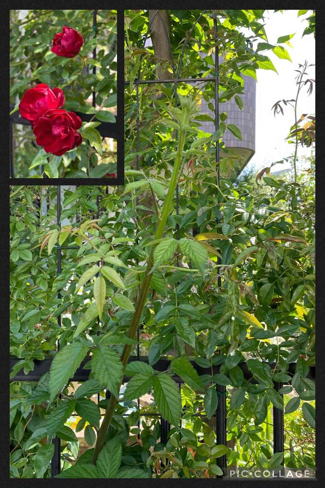 昨年まで軒下でオベリスクに巻き巻き仕立てていたツルバラ紅玉❤️