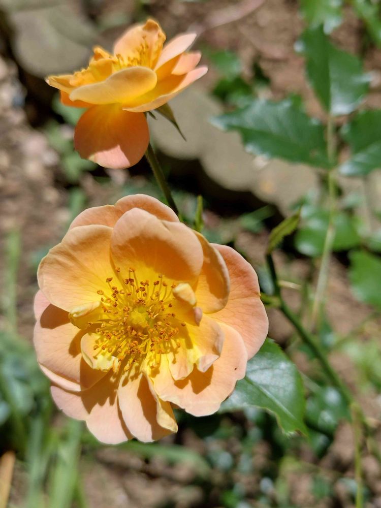 アプリコットカラーが可愛いカーペットローズ、次々花を咲かせてくれます。(^^♪
