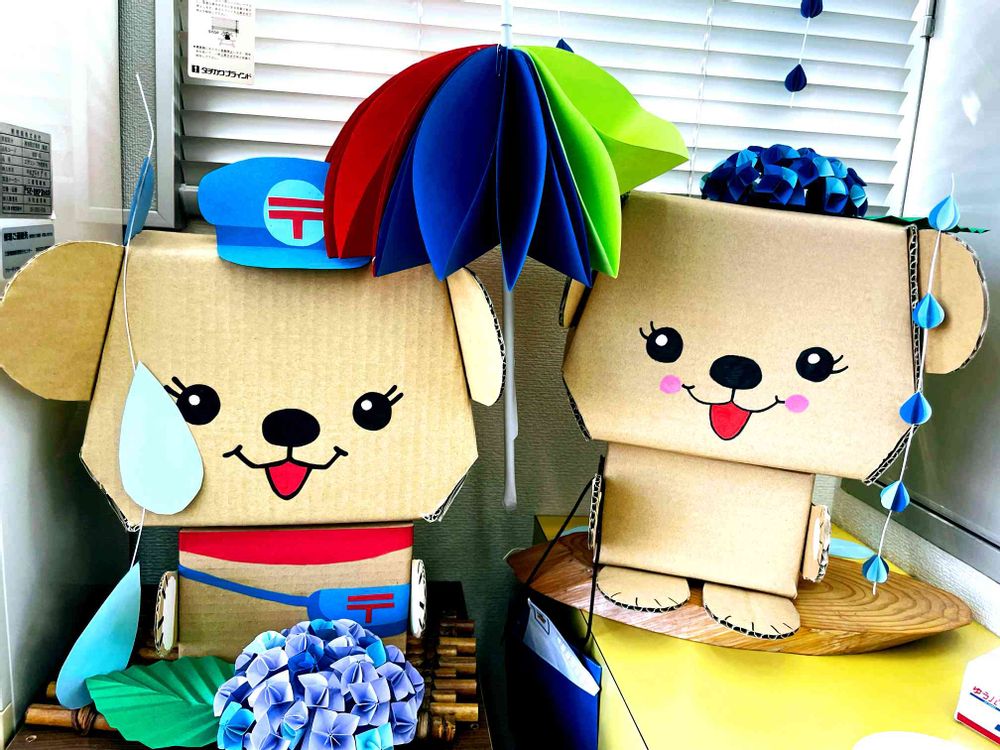 郵便局🏣に、手作りのワンちゃんがありました。