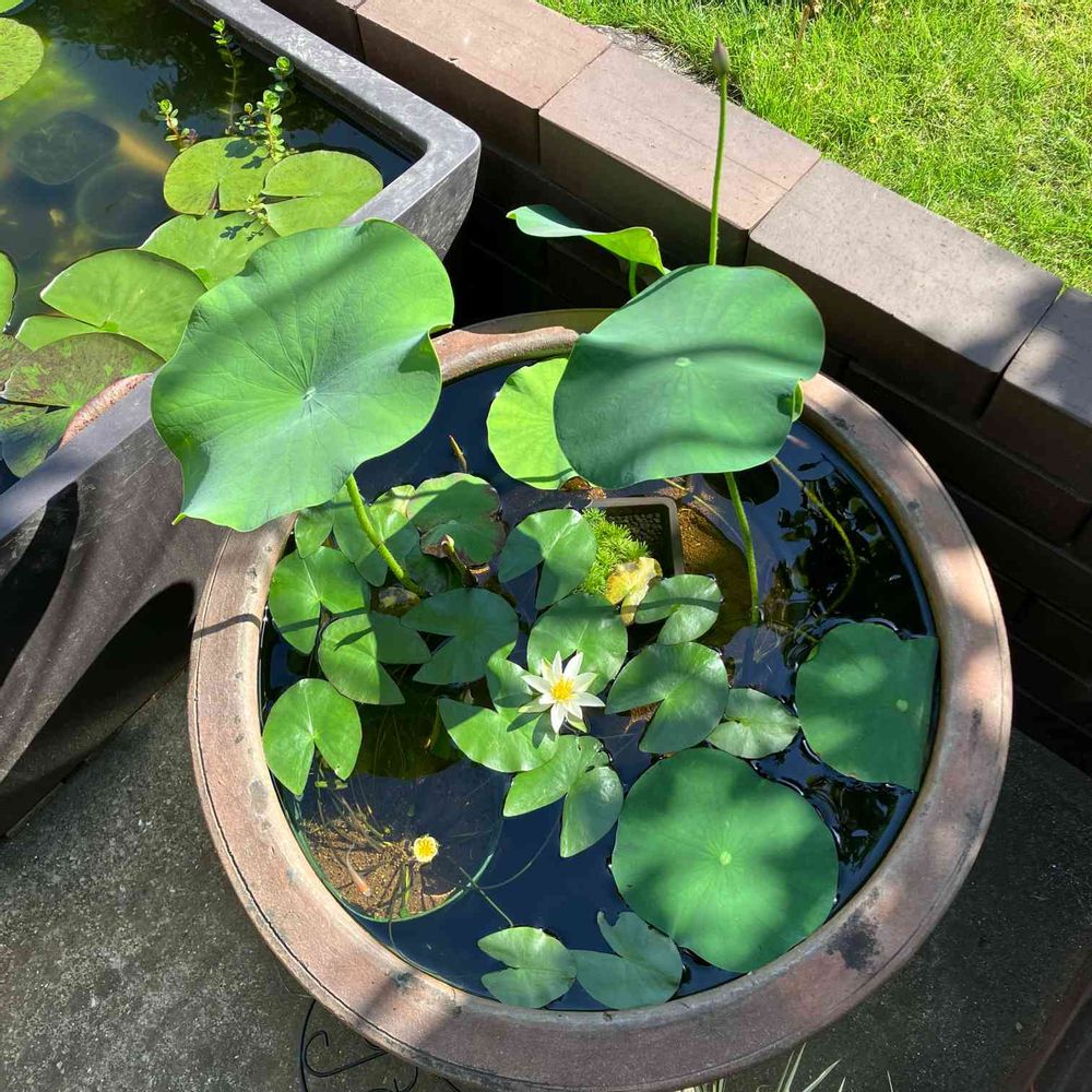 お日様に当てとけば勝手に大きくなる睡蓮。一方でハスはひょろひょろ。うーん難しい。