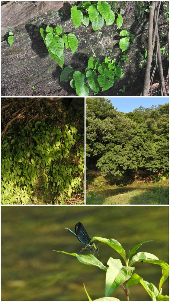 川が大きな一枚岩に当たって蛇行する切り立った斜面にイワタバコの葉が、びっしり張り付くように群生していました。