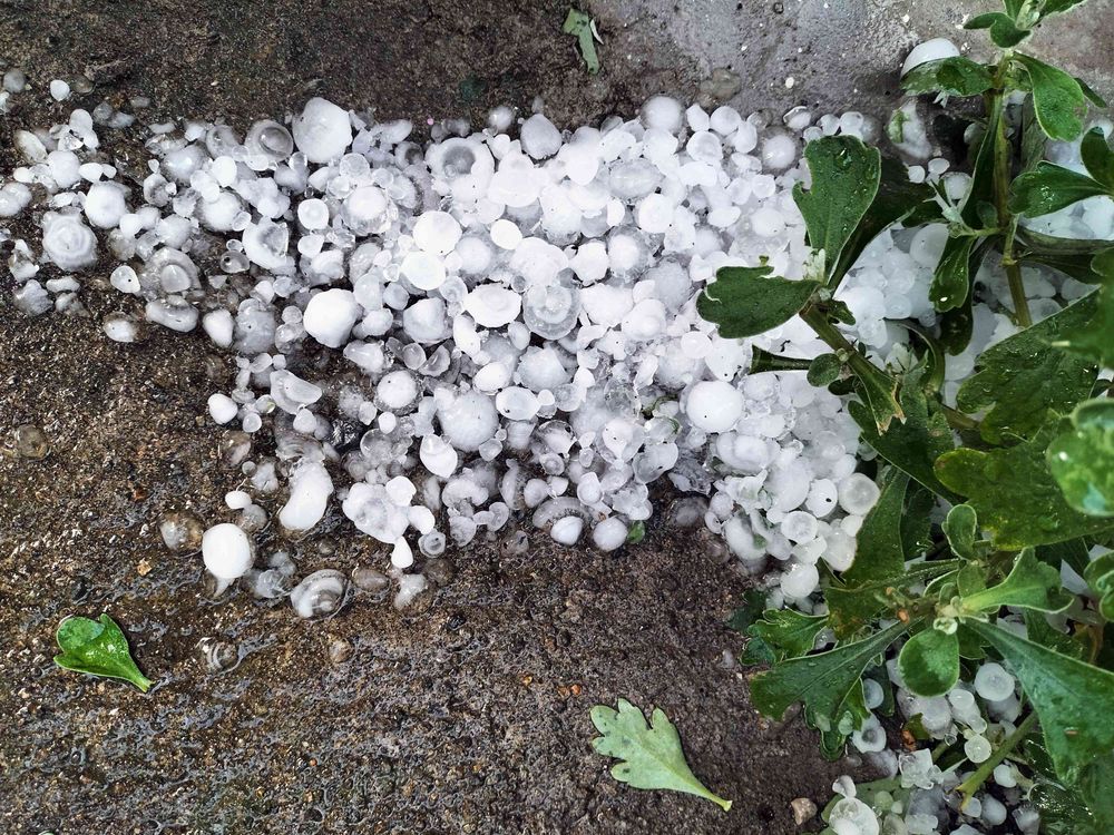 今まで雹が降っても形が残る事花ありませんでしたが今回は手の平に載る程でした。驚くばかりでした。😂😭