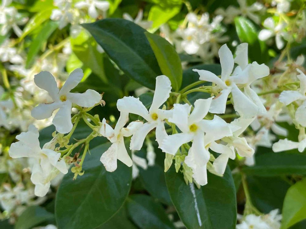 神社の敷地から道にはみ出すように白いお花が〜💠💠💠