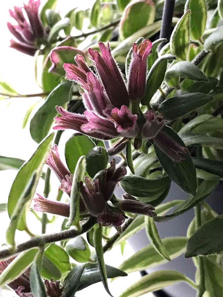 お花は初めて咲いたのですが,色など見たことがなかったので新鮮です☺️ピンクにブラウンの斑入りシックですね。エキゾチックですね!また全体も撮りたいなぁ…