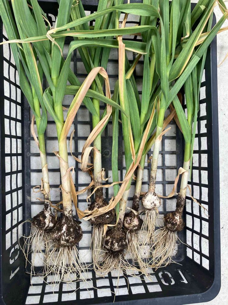 小さな粒のニンニクは大きく育たないので3月終わりから4月にかけて収穫し葉ごと炒めて頂いています。茎が柔らかくてオススメです