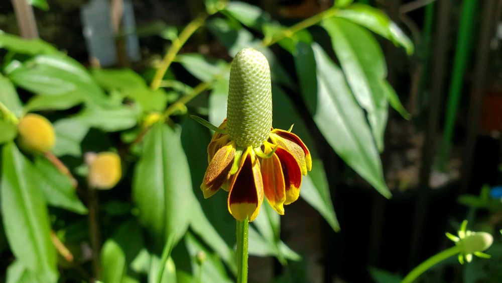 ラティビダ メキシカンハットが開花しました。先に頭が出てきて、あとから花びらが開き始める感じ。