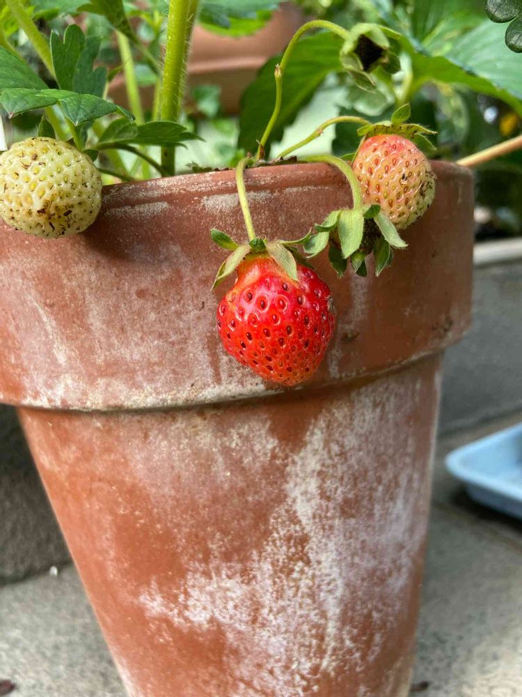 寄せ植えに入れてたとよのか苺を、鉢替えして育てています。