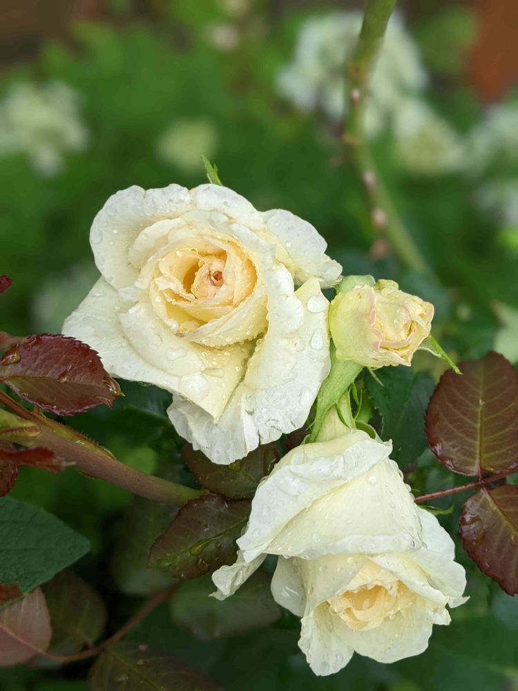 雨に濡れてもステキ 白い薔薇も良いですね〜💕💕