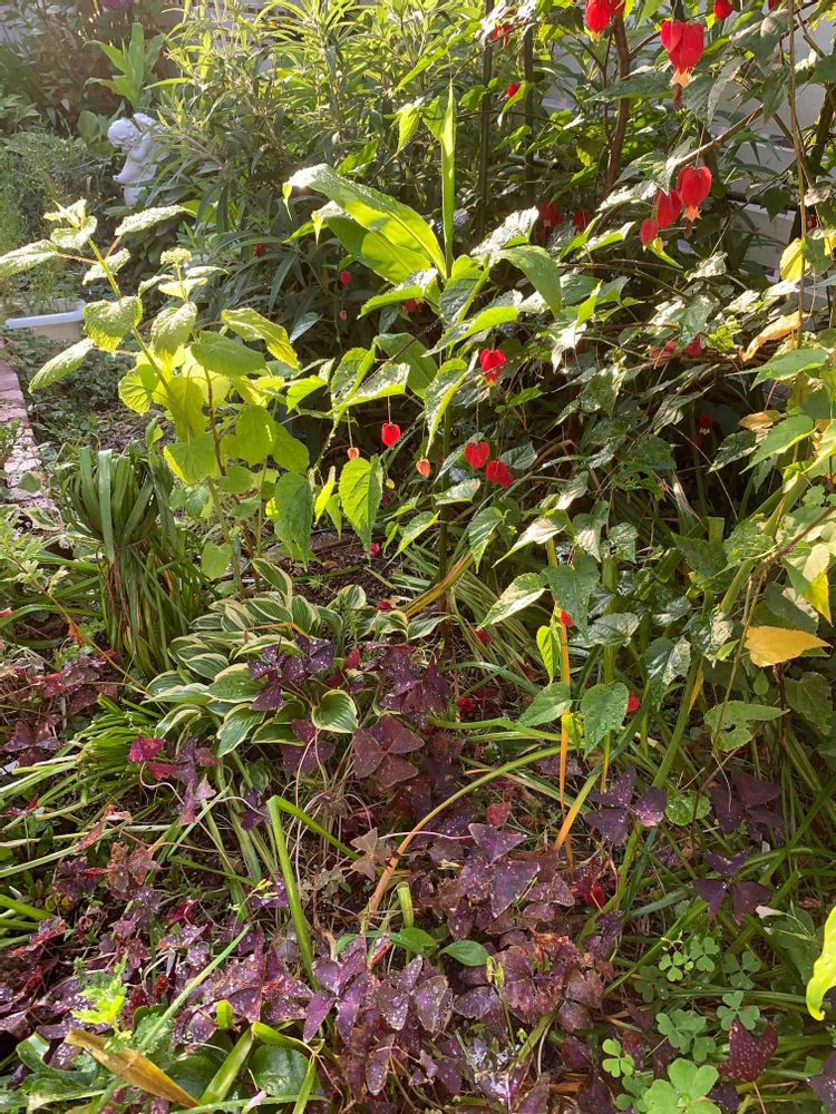 朝日だけが当たるシェードガーデン。何が育つか色々試してます。