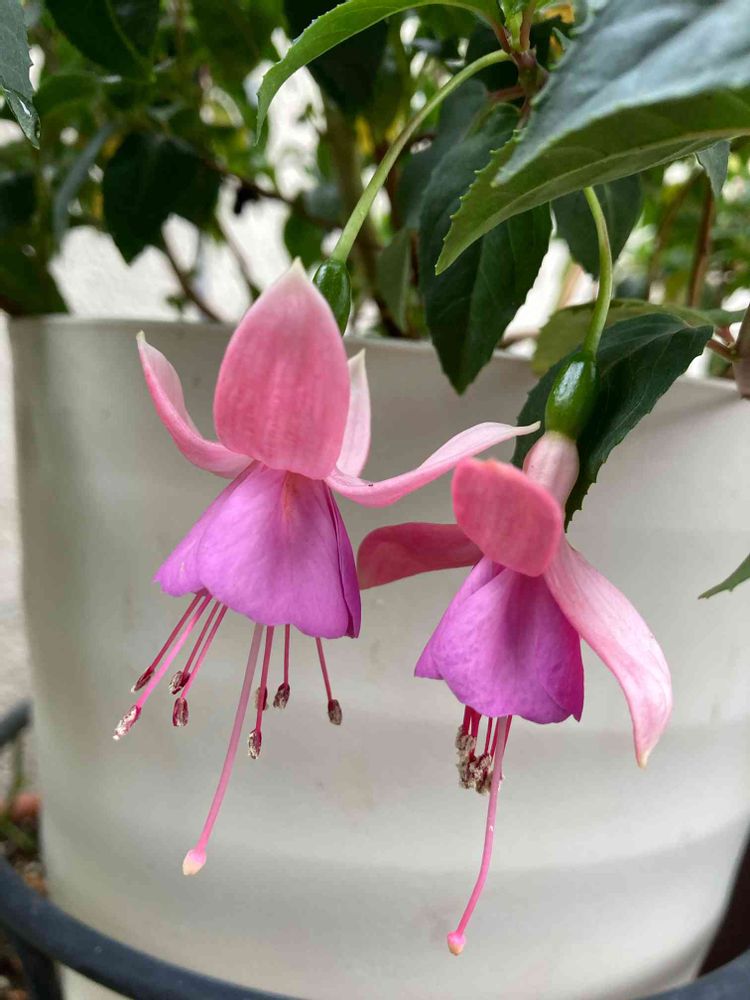 ハイ❣️🧚♀️↗️👼 去年赤いフクシアが、🐛の害にあって一晩で坊主になってから、鉢植えであちこち移動させています。夏場は、半日陰位の方が、花色も綺麗に感じます。今は、玄関横の金木犀の下で日焼けを防いでいますよ🧢