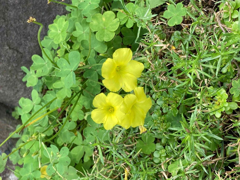 カタバミくんです😊大きめの黄色い花を咲かせていました。名前は、オオキバナカタバミ?ってそのままやん😅あってるかな?