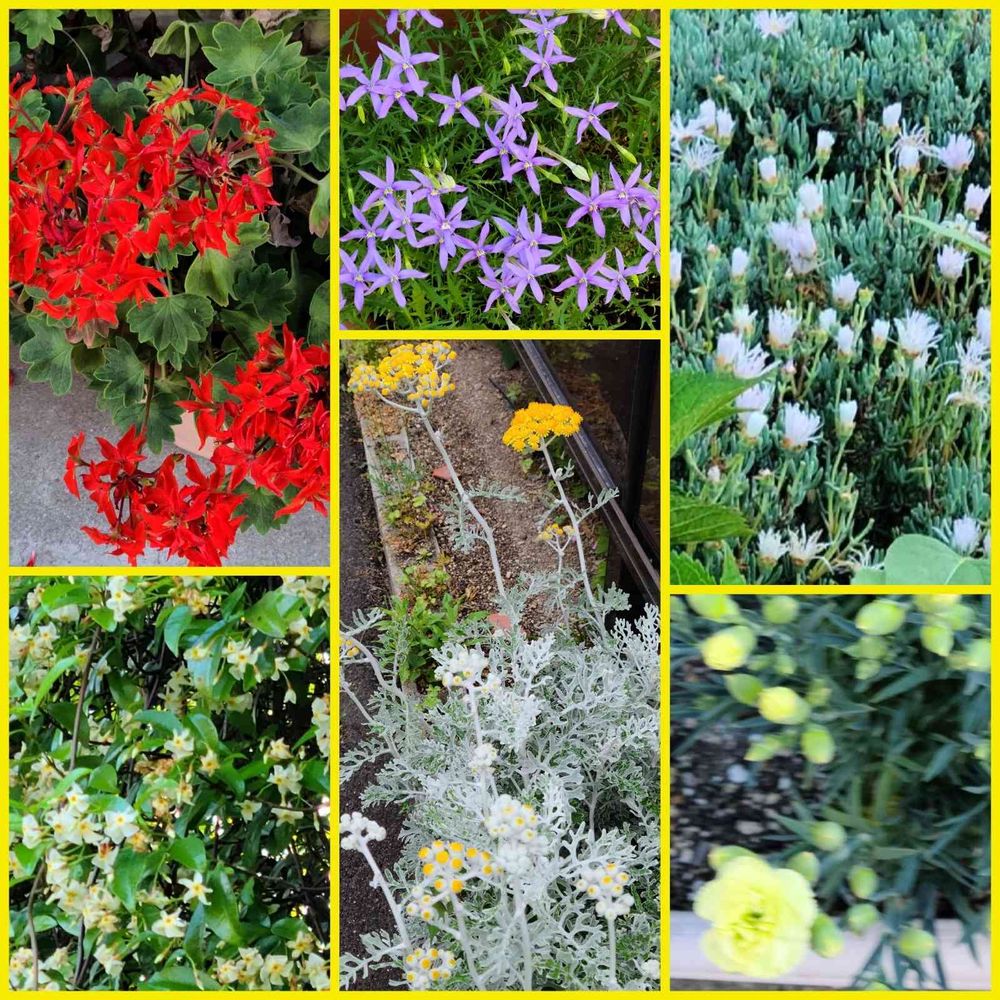 ゼラニューム、イトソマ、マツバギク、カーネーション、イソギク、ティカカズラ