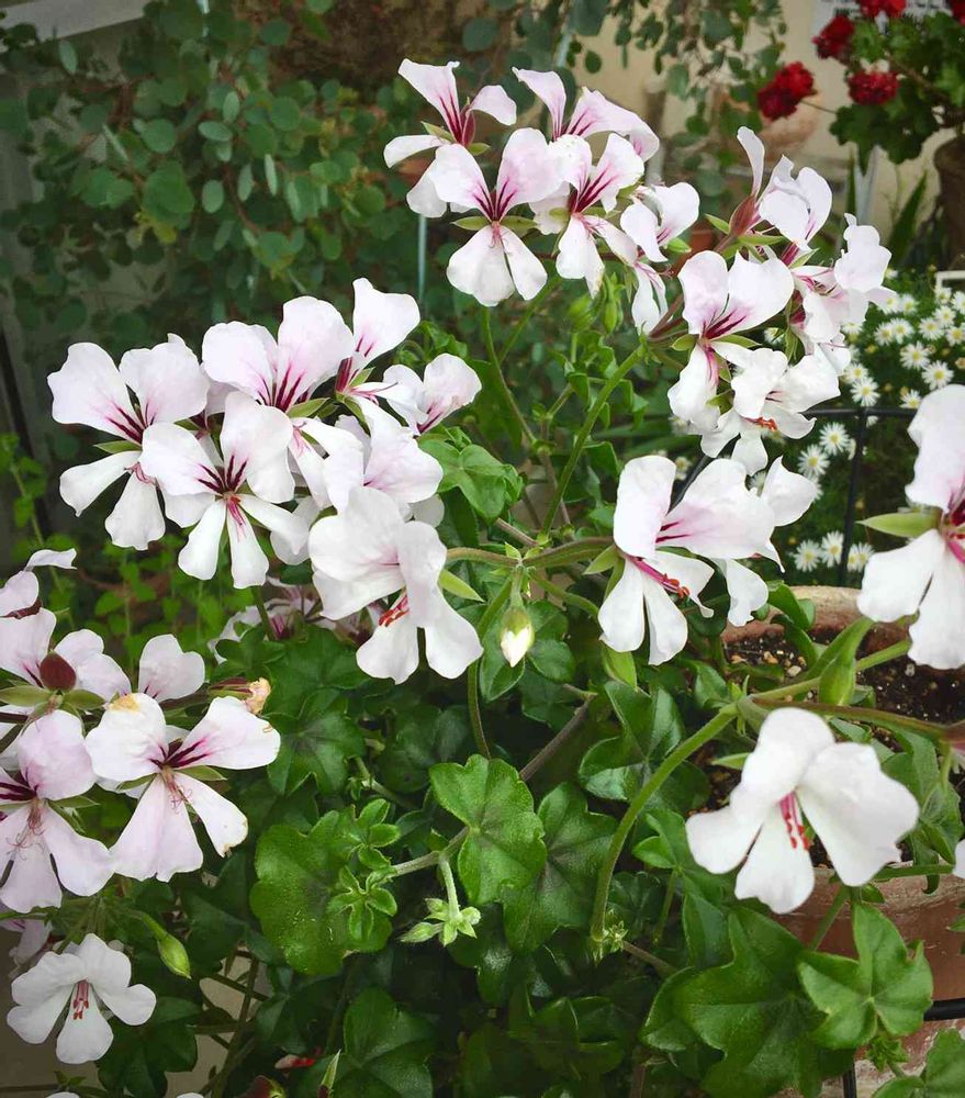 相変わらず斑入りの葉っぱは現れないアイビーゼラニウム。ひらひらとした繊細な薄い花びらが美しいです☺️