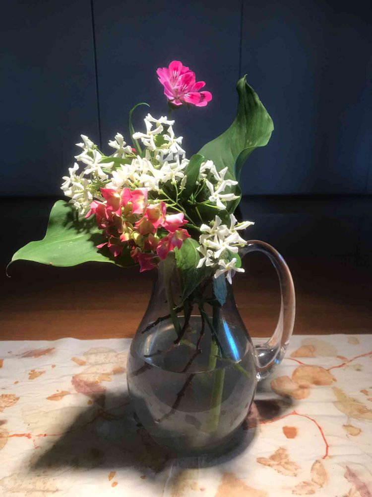 ジャスミンとカラーの葉で活けました。