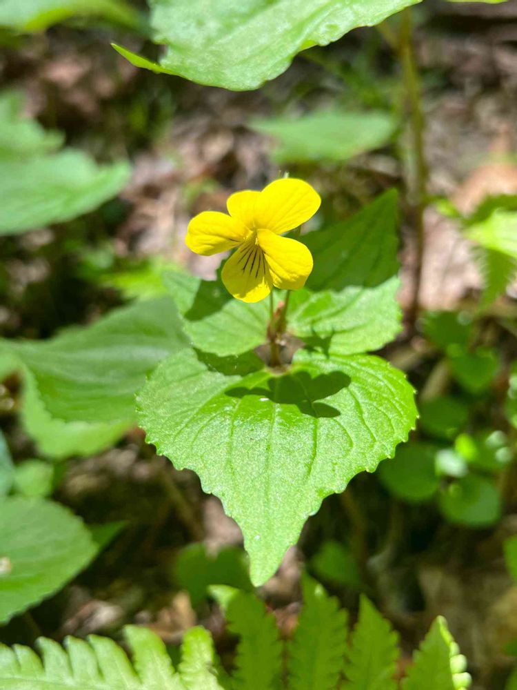 花が黄色くて、葉のつき方も他のスミレとは違って独特。
